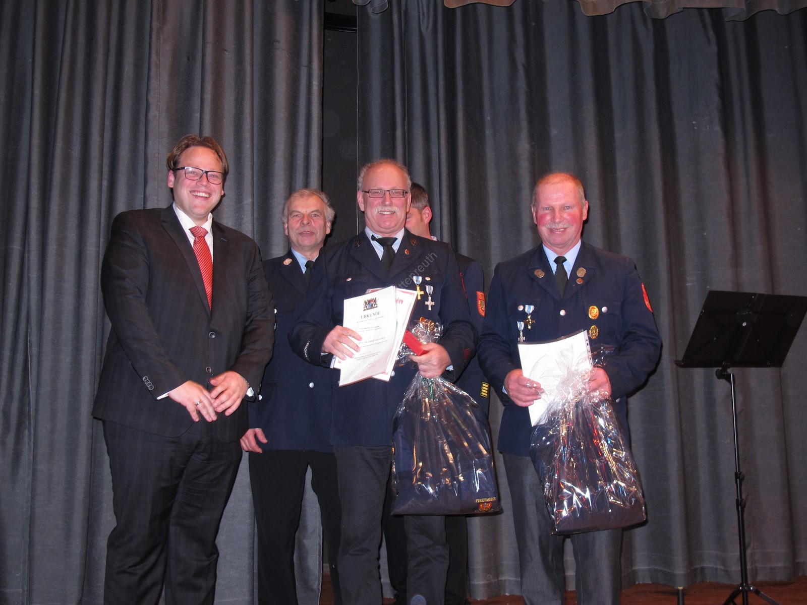 Der Vorsitzende der Feuerwehr Uttenreuth, Roland Körner übergab Walter Baier und Helmut Horlamus im Namen aller Mitglieder ein Geschenk des Vereins. Walter Baier ist langjähriger zweiter Vorsitzender des Vereins und Helmut Horlamus hat seit mehr als zehn Jahren das Amt des Kassiers inne. Aufgrund der Neunovellierung des Feuerwehrgesetztes stehen beiden noch viele Jahre im aktiven Dienst bis zur Vollendung Ihres 65sten Geburtstages bevor.