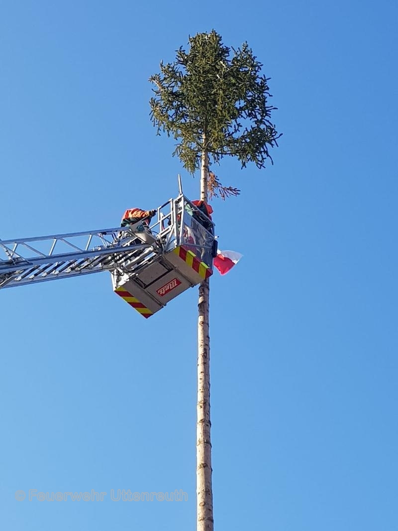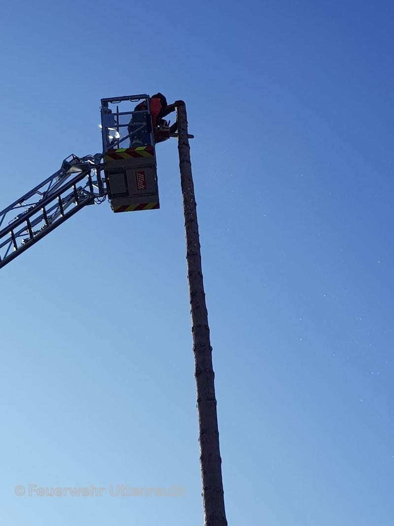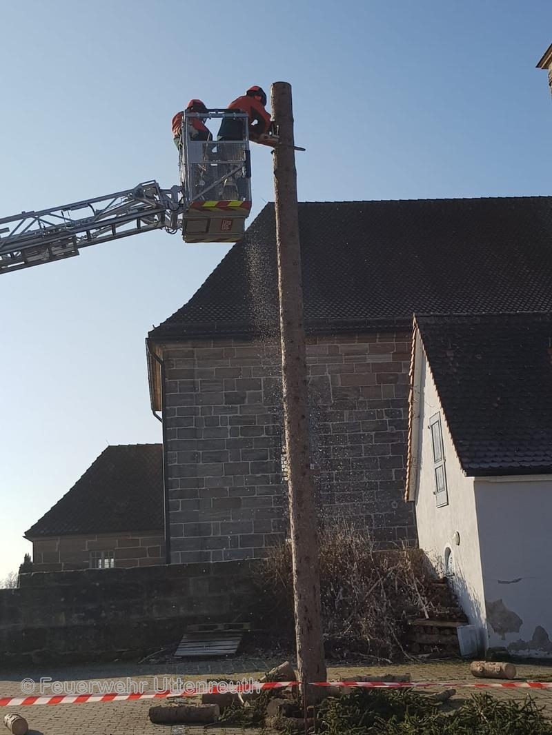 Im Auftrag der Gemeinde wurde der Kirchweihbaum abgetragen und somit die Gefahr aufgrund des heranziehenden Sturmtiefs beseitigt.