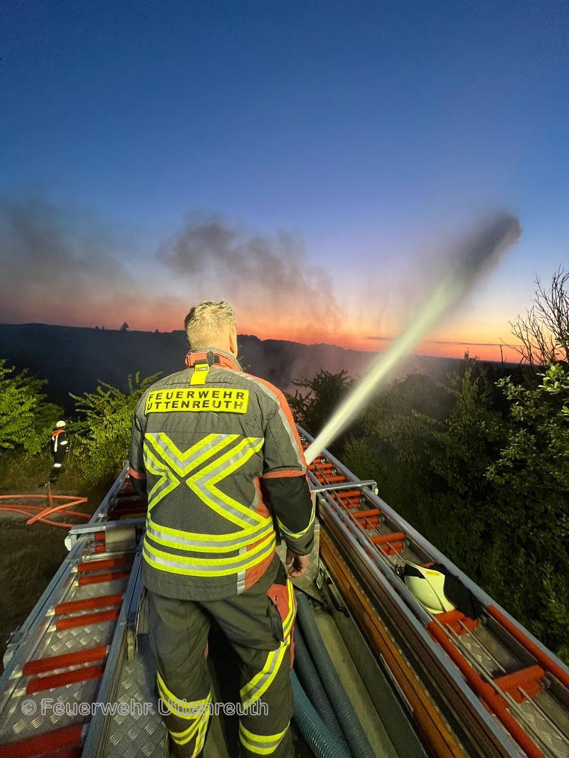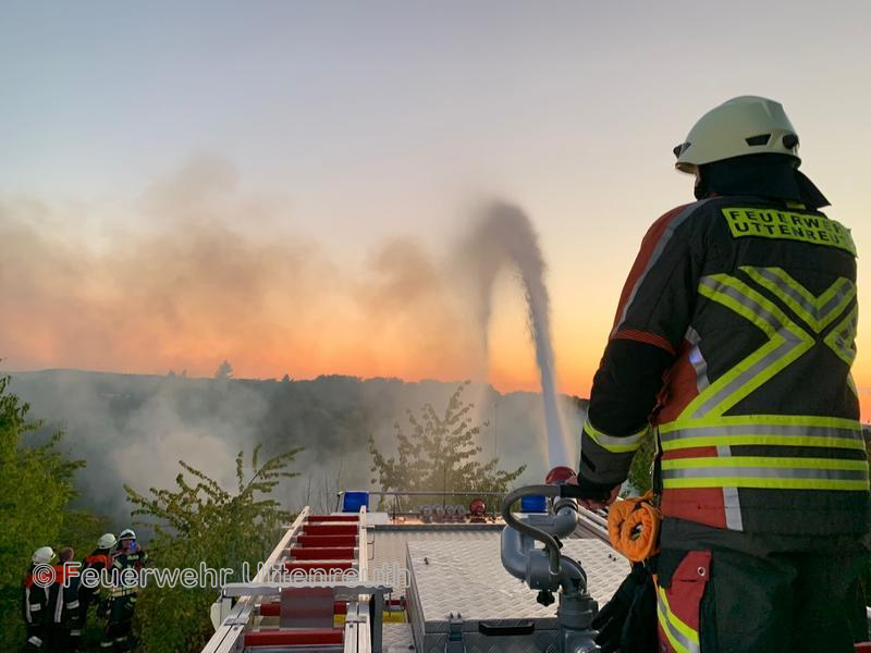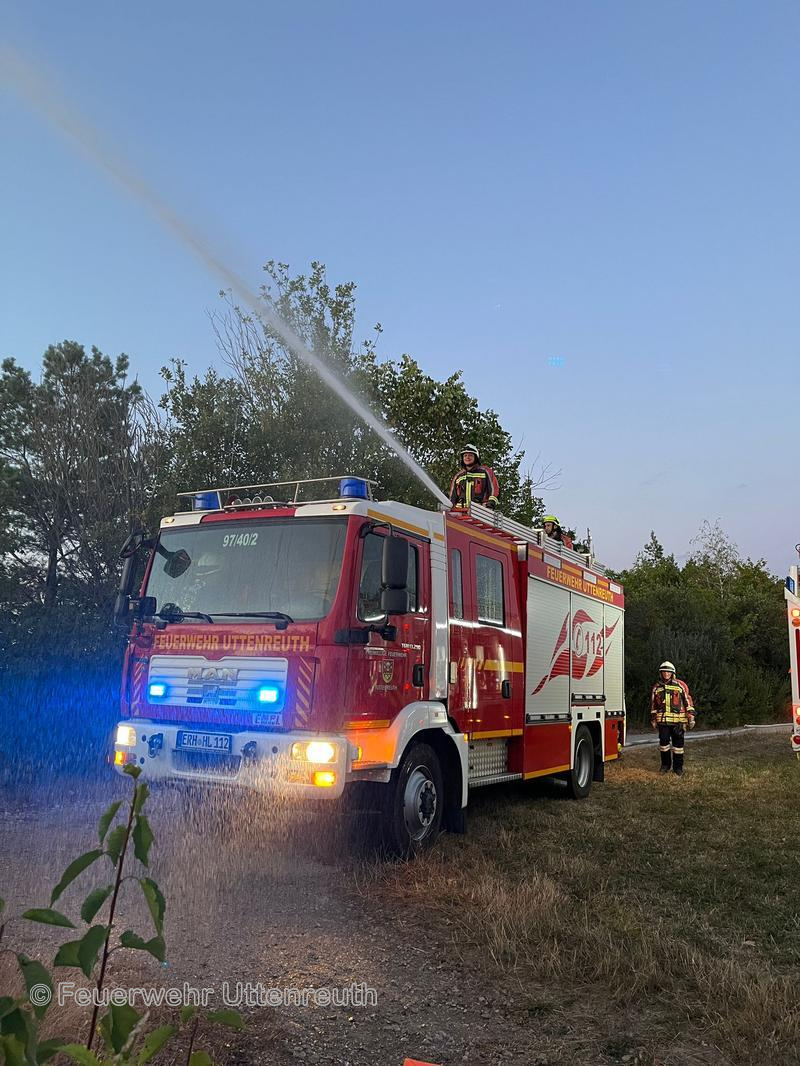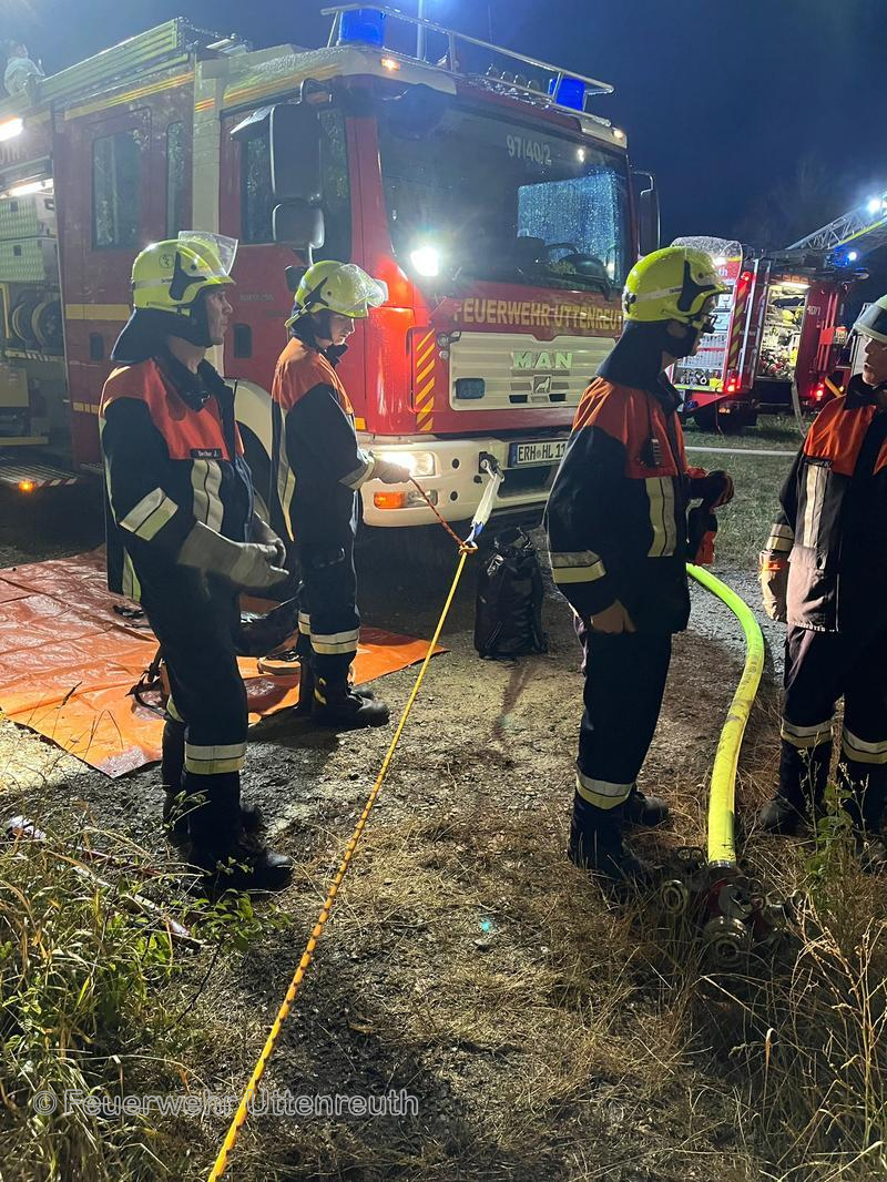 In Marloffstein brach ein Großbrand im eingezäunten Bereich der Tongrube aus. Durch die schlechte Zugänglichkeit und die trockene Vegetation wurde eine große Zahl an Feuerwehren nachgefordert, um das Feuer einzudämmen bzw. zu löschen. Nach etwas mehr als vier Stunden war für uns der Einsatz beendet und wir konnten wieder einrücken.