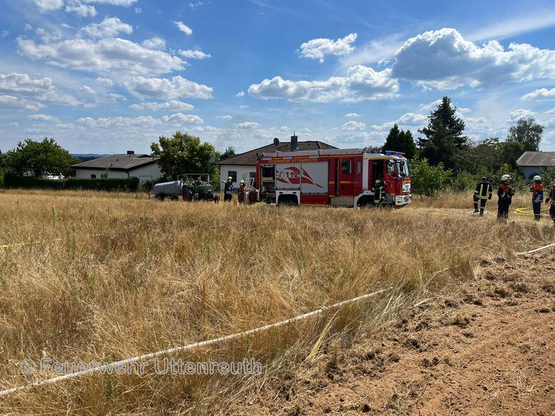 Während Mäharbeiten auf einem Feld brach ein Feuer aus. Ob diese auch die Brandursache war ist unklar.