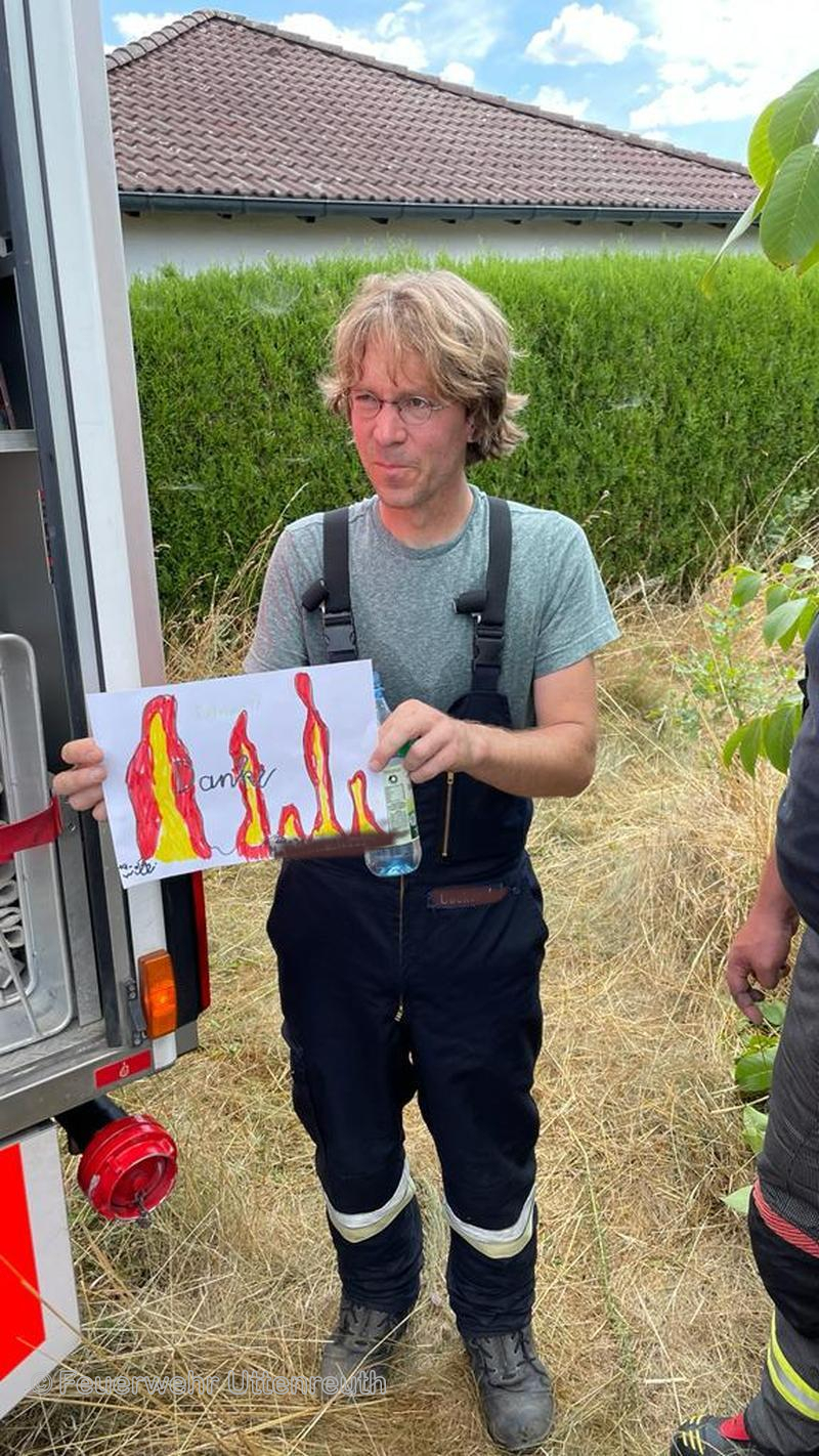 Nach gut zwei Stunden war der Einsatz zu Ende. Zum Schuß wurde uns noch ein Dankesbild einer jungen Anwohnerin überreicht.