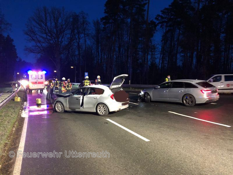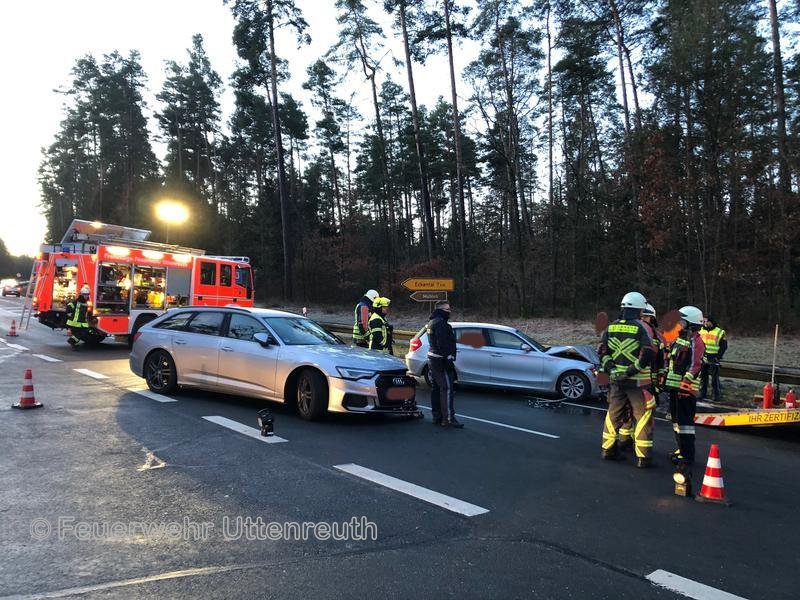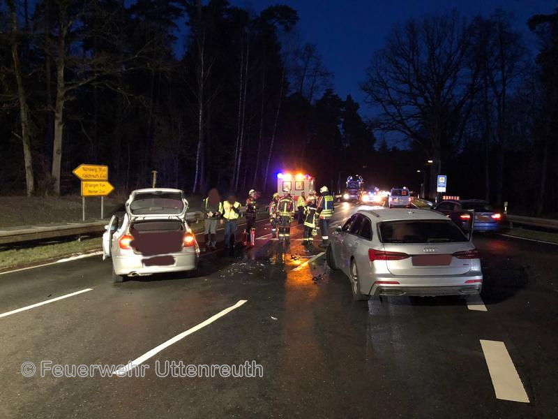 An der Kreuzung Staatsstraße 2243/Kreisstraße ERH 33 ereignete sich ein Verkehrsunfall mit zwei PKW. Bei unserem Eintreffen wurden die Fahrer bereits durch den Rettungsdienst betreut.