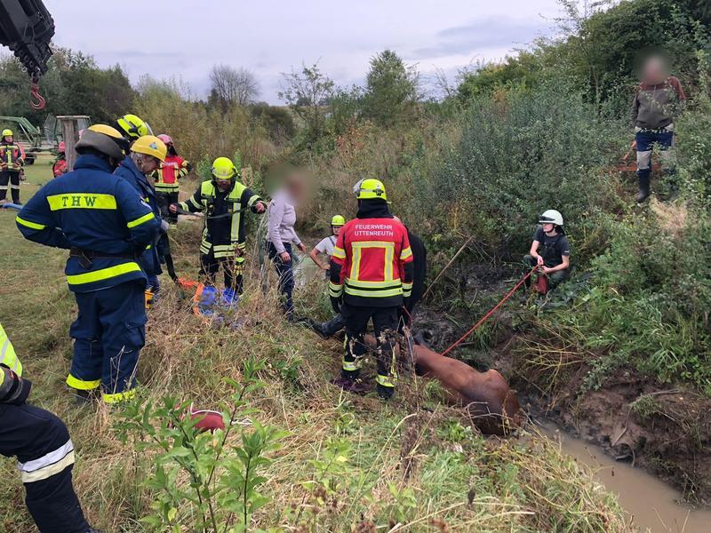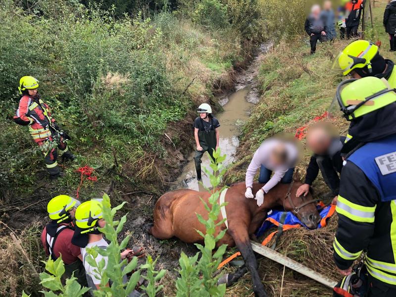 Tierrettung: Pferd im Graben